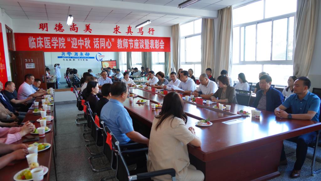在中秋节、第38个教师节来临之际,9月8日下午,永利集团304官网在医学旧校区教学楼311会议室组织召开了“迎中秋 话同心”教师节座谈暨表彰会。公司党委书记王德、党委副书记王福正、副经理田莉梅及教学优秀个人、教研室主任、综合办全体教职工参加了会议。会议由经理康东主持。