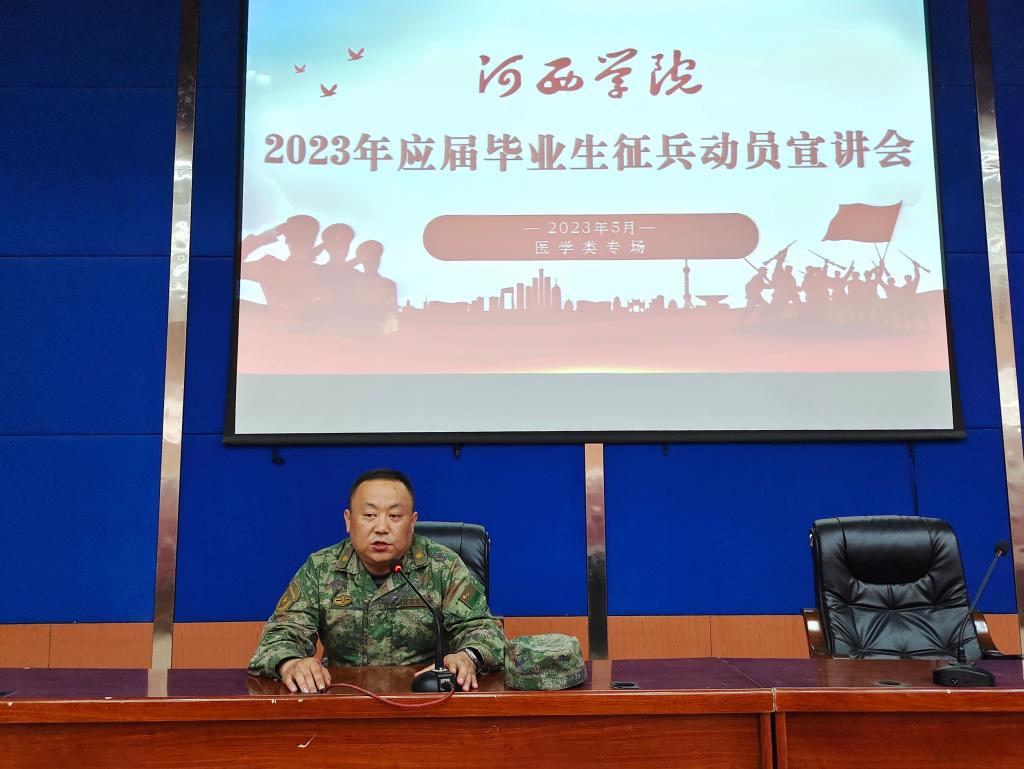 宣讲会上,张掖市人民政府征兵办公室参谋吴彦钊解读了2023年的征兵条件及相关政策,尤其是同学们关心的补偿学费,奖励资金,以及退役保障等。帮助同学们理清政治账,经济账。他鼓励老员工毕业后积极响应党和政府的征兵号召,到部队锻炼自己,为国家和人民贡献出自己的力量,实现自己的人生价值。