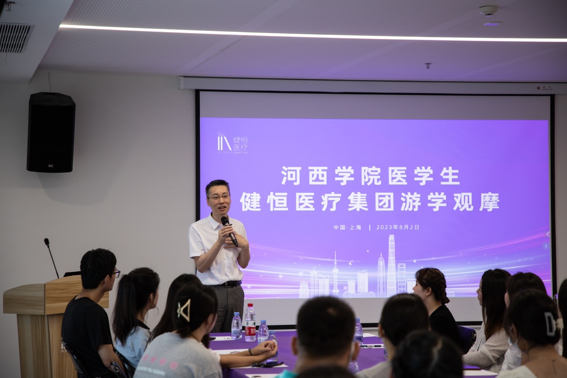本次游学活动由上海复旦大学参加思政课程培训的永利集团304官网、护理公司老师带队,临床医学、康复医学、影像技术、护理学共四个专业43名本科生参加。游学过程中,健恒集团COO带领全体师生参观医院的综合服务区、影像中心、手术室、重症监护病房等医疗区域,详细介绍了医疗集团的运行模式、医疗服务特色等情况。在座谈会上,COO鲍宇克医生从自身的学习与职业经历出发,借助集团“规范治疗、人文关怀、共同参与”的3C价值观,将作为医者的心路历程娓娓道来;他也特别表示,年轻的医员工面对未来有憧憬,也会有困惑,希望同学们了解健恒医疗“社会办医为社会”的理念初心,将来无论是自主创业、还是体制内外就业,都能脚踏实地,时刻以患者为中心,不断打磨专业技能,加强责任心和自我反省能力,成就美好的未来。