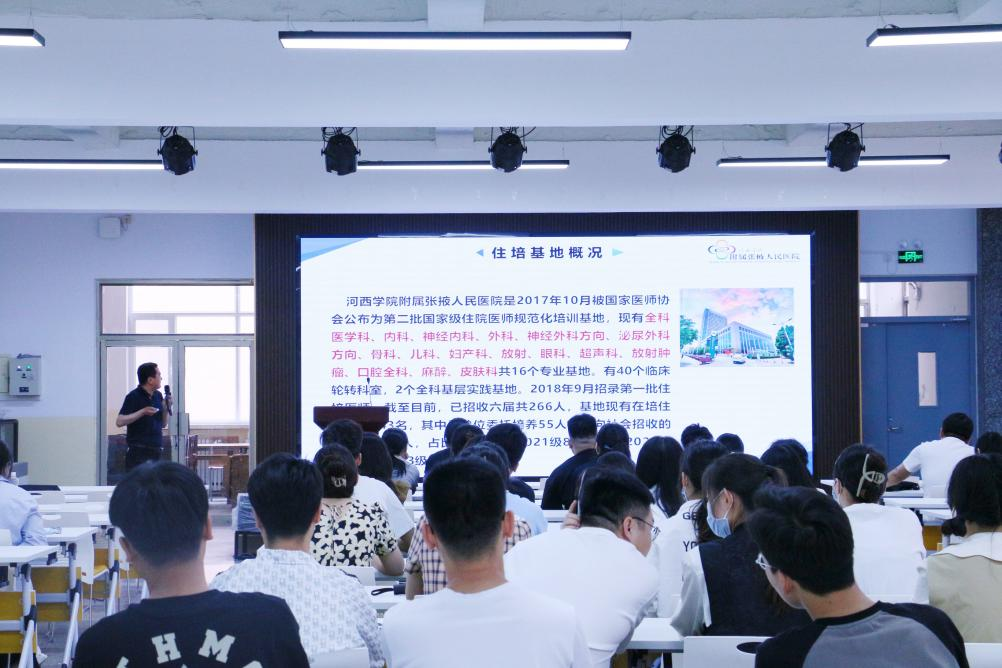 首先,附属医院住培办副主任郑如林就住院医师规范化培训做了详细讲解。他主要分享了医院概况、医学规培生的发展、培训阶段、科室基本情况、医院住培容量核算、条件待遇等方面的内容,同学们对于医院住培基本情况、招收政策等问题进行了详细咨询,增强了大家对住培的认识和了解,为毕业生的未来职业规划发展提供了有力帮助。