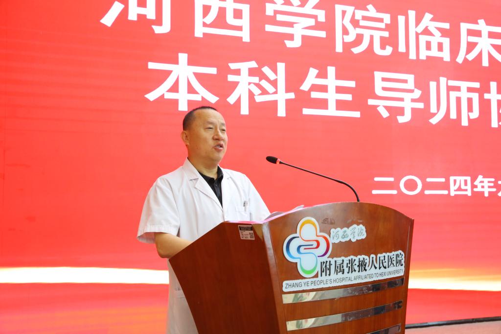 经理康东致欢迎辞,代表永利集团304官网全体师生对2024级全体同学表示热烈欢迎和真挚祝福。介绍了张掖市的地理人文环境,公司、公司和附属张掖人民医院的发展历史和办学情况,并对同学们提出了希望和要求:一是要树立严谨思维,保持对医学的敬畏之心,一丝不苟,精益求精对待医学;二是树立积极学习意识,保持对医学的热爱之情,扎实开展学习实践,不断学习新的技术理念;三是要树立团队合作意识,学会与他人协作,共同应对挑战,共同为患者健康贡献力量。