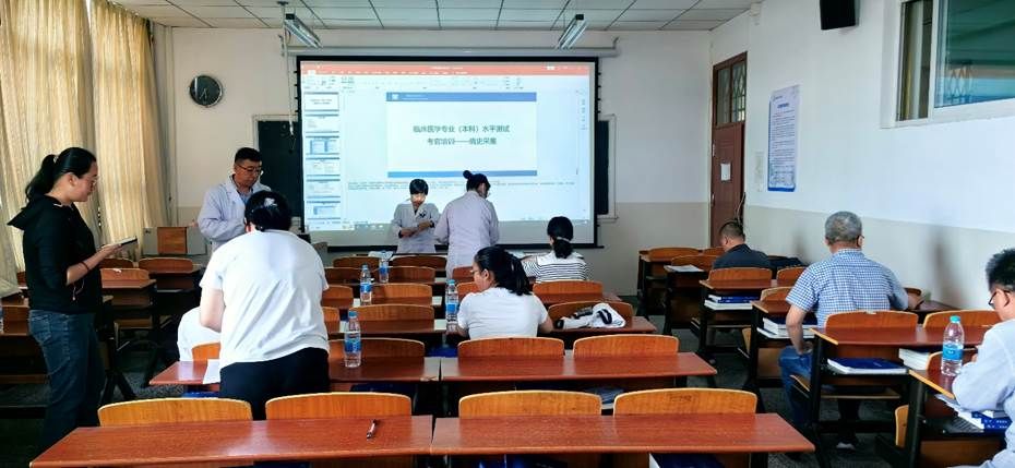 培训会上,教科办负责人系统解读了水平测试的考核目标、流程规范及评分细则,重点剖析了病史采集、体格检查、技能操作等考站的评分要点,并结合历年执考案例强调了易疏漏环节。由各站站长,分组进行考站考官培训与考核。经此次培训执考练习、执教考核、讨论等环节,各考官能在执考过程中统一标准,取得预设效果。